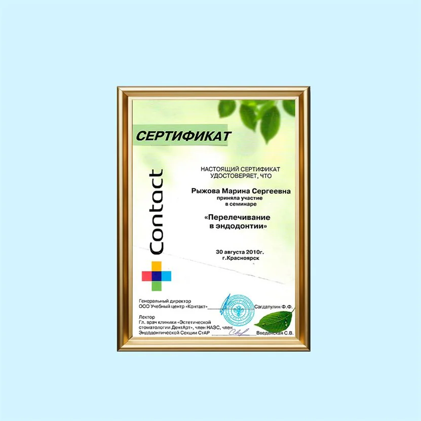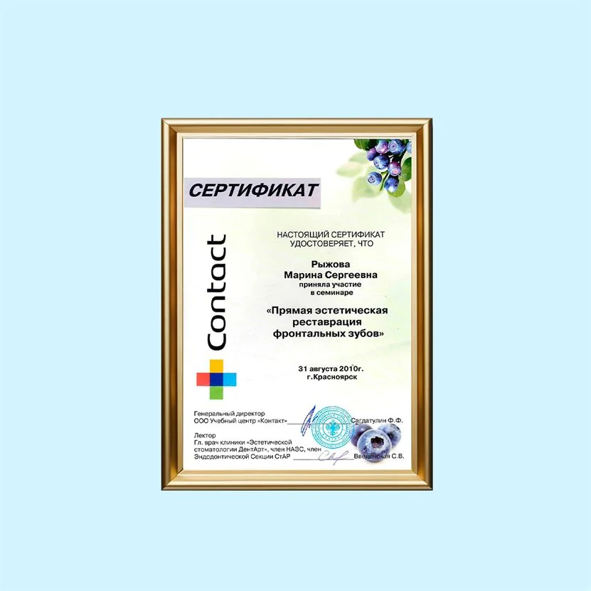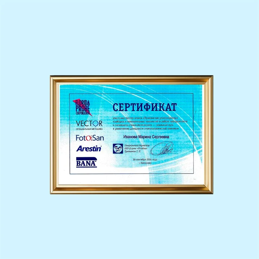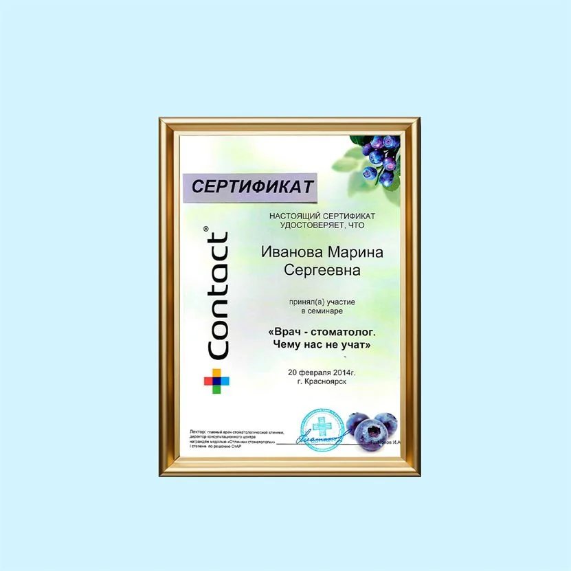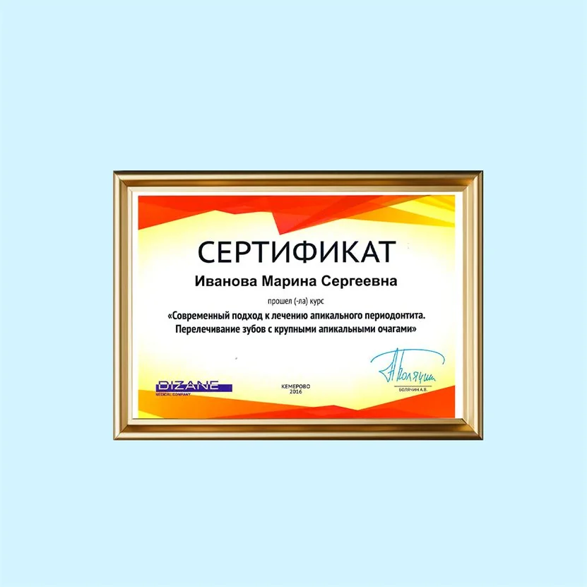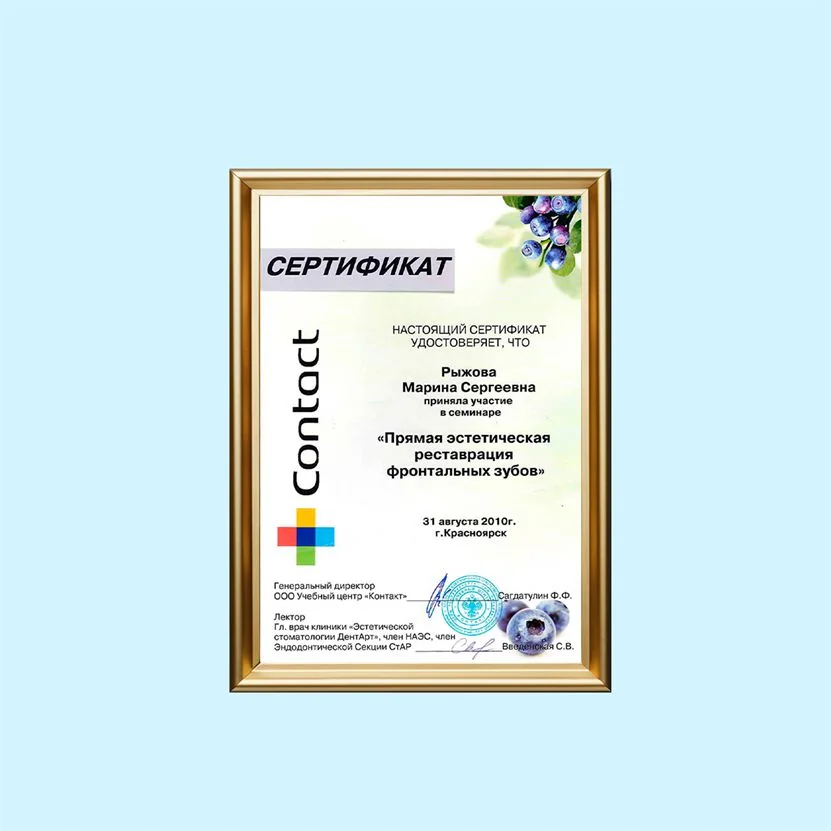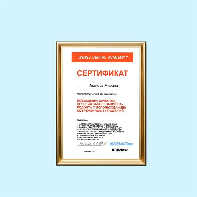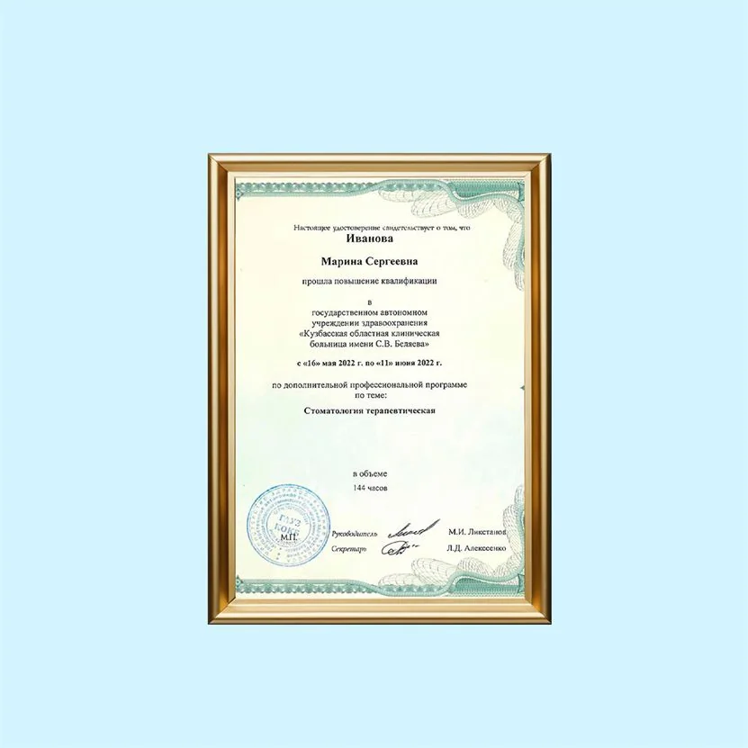 2012 г. — «Кемеровский государственный медицинский университет», Стоматология терапевтическая (повышение квалификации)